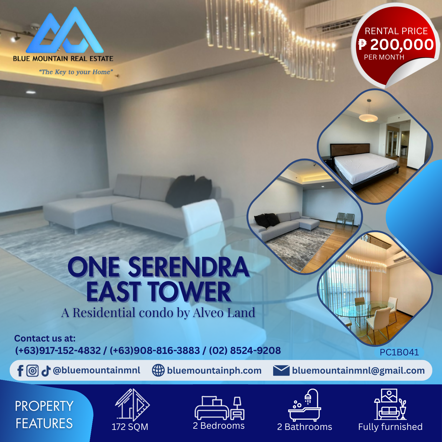 2 BR Condo for rent in One Serendra, East Tower, BGC, Taguig City