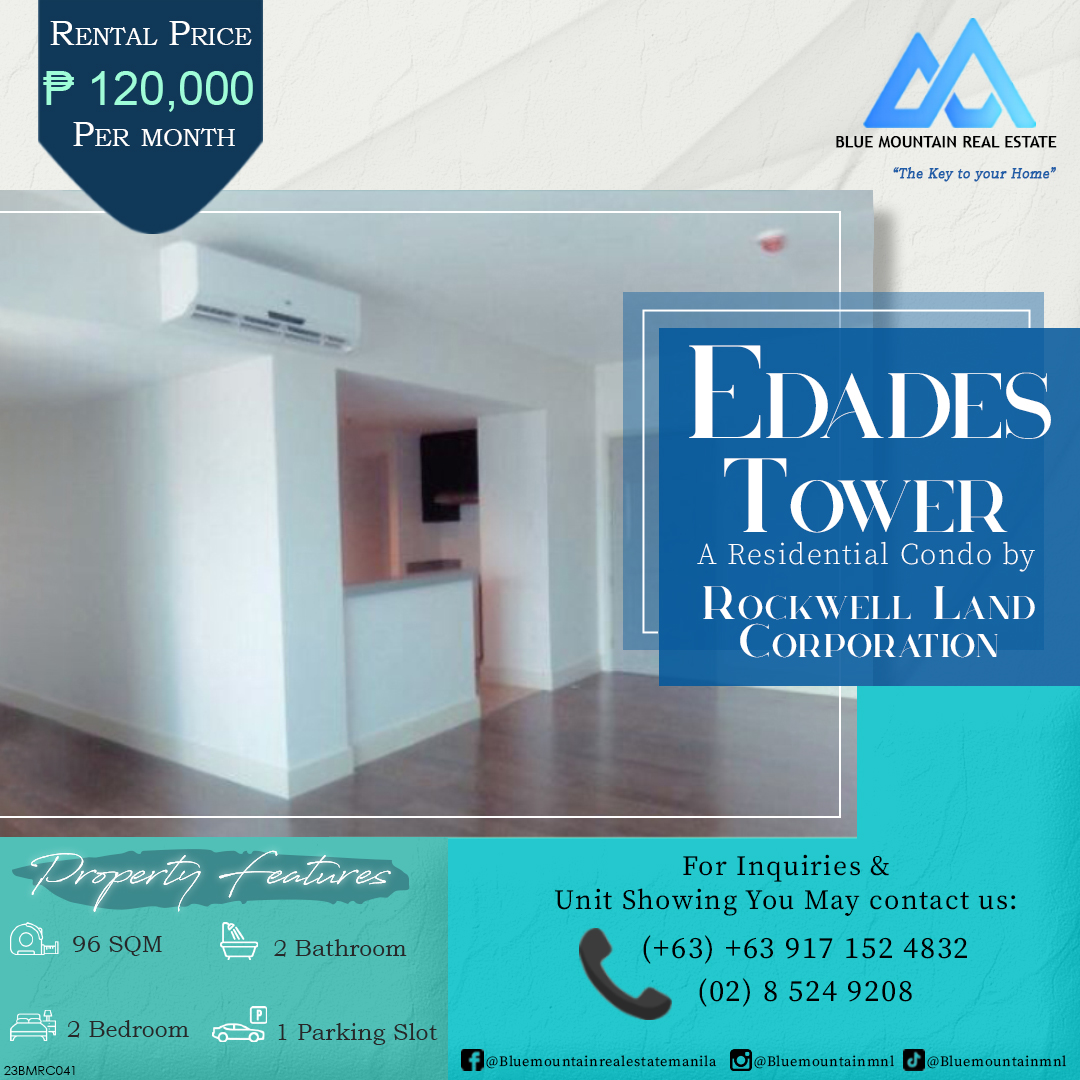 2BR Condo for Rent in Edades Tower, Rockwell Center, Makati City